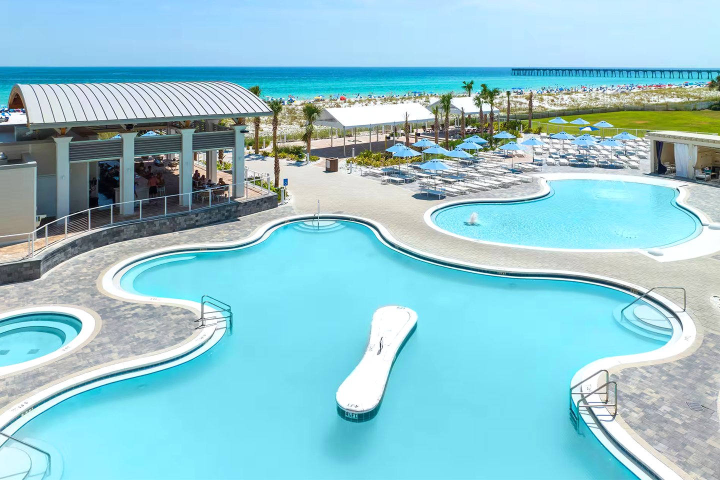 Swim and unwind in our beachfront outdoor pools overlooking the Gulf of Mexico. Enjoy poolside relaxation, a soothing hot tub, and on-site dining, creating the perfect setting for fun and relaxation.